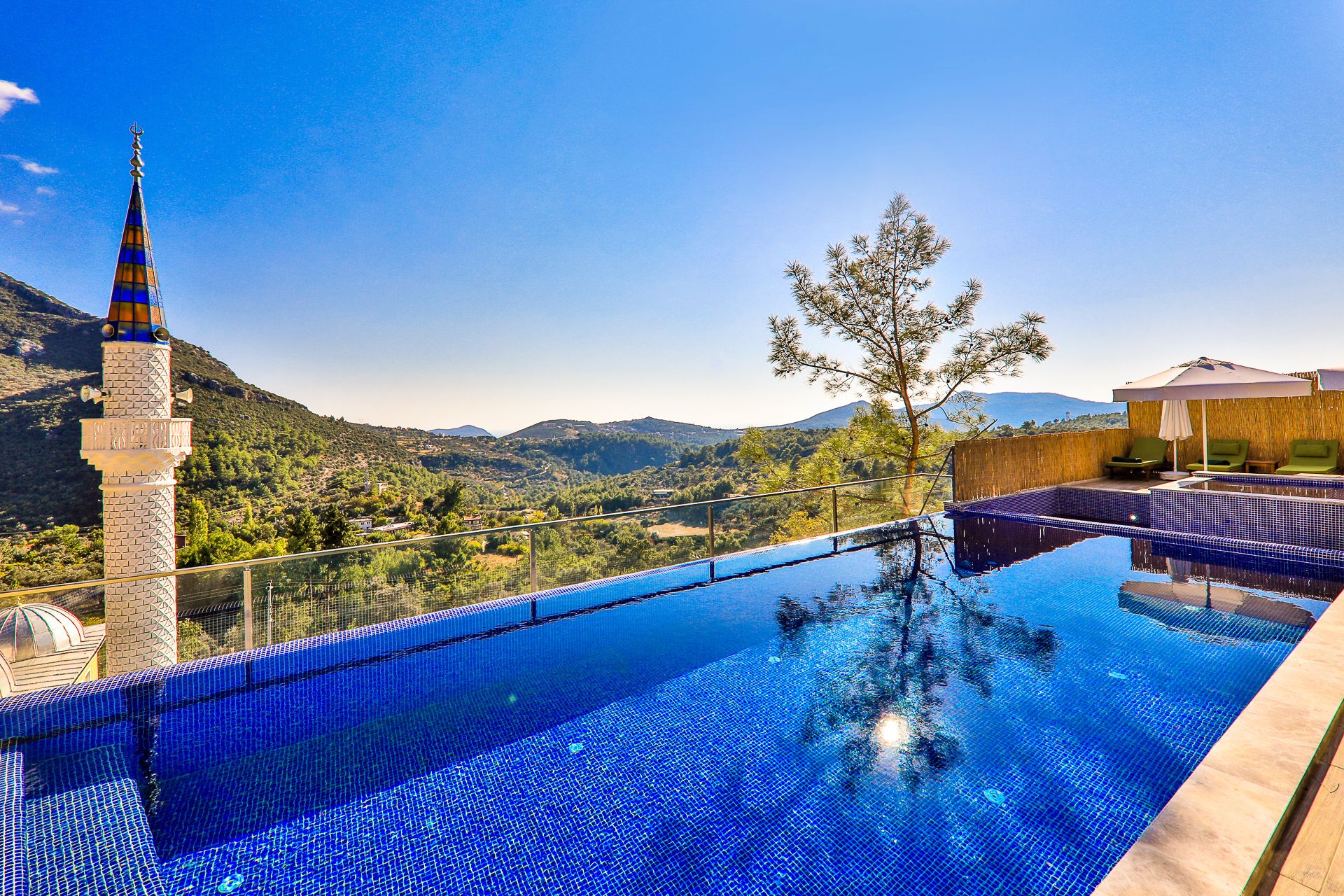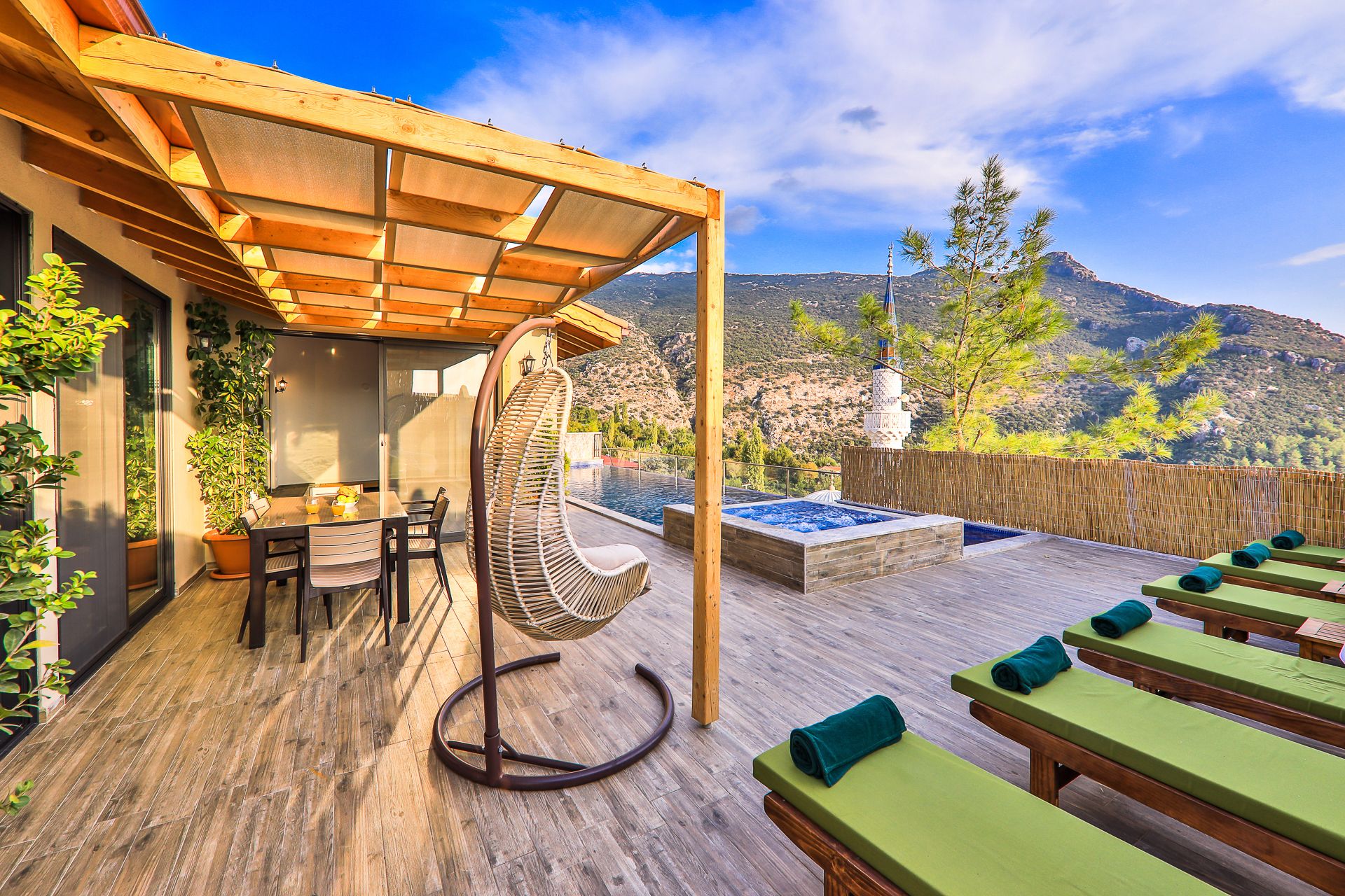 Villa Myra, Kalkan İslamlar Bölgesi'nde bulunan, yatak odasında ve havuz terasında çift kişilik jakuzi ve kapalı ve açık özel korunaklı...